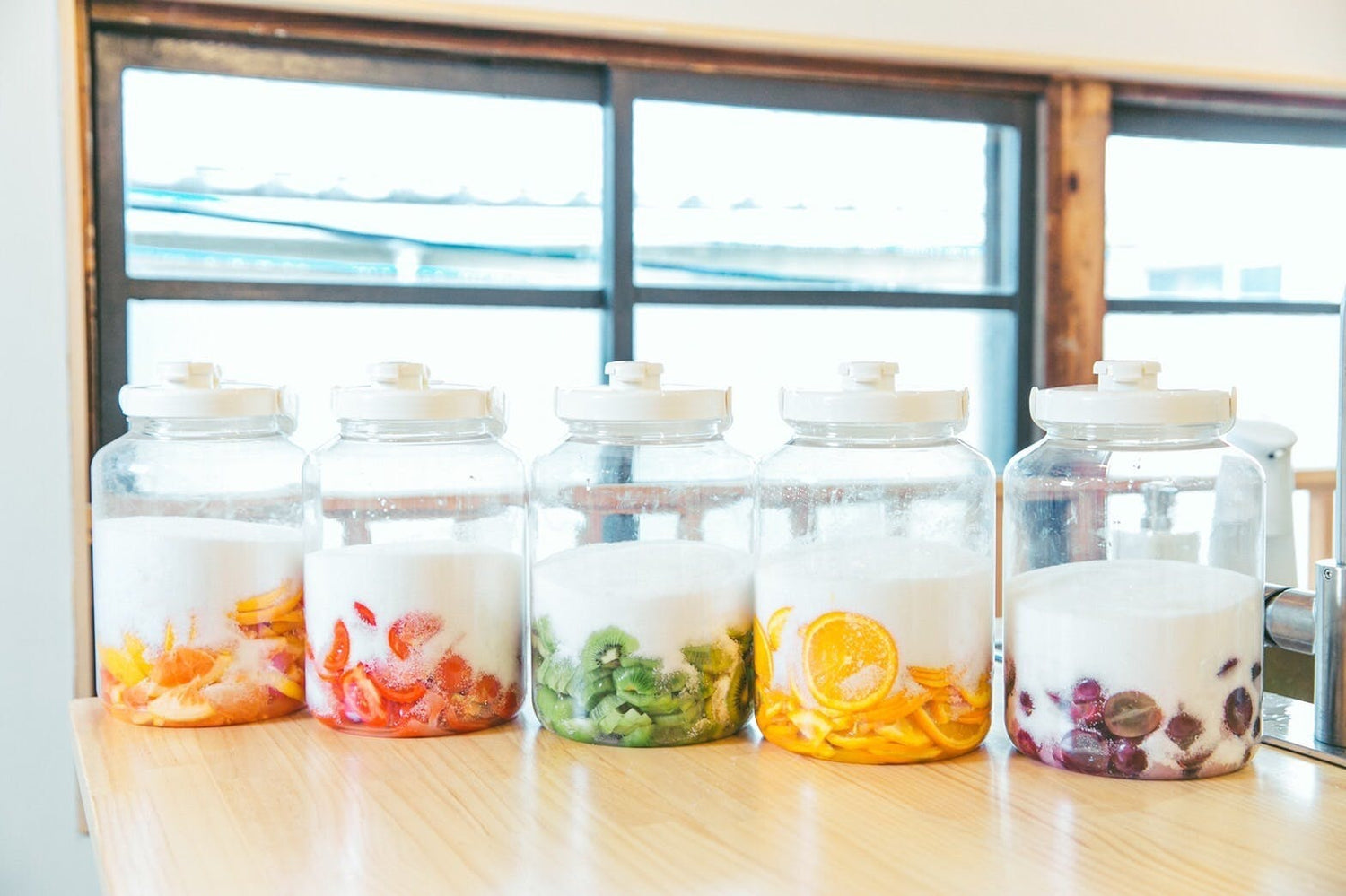 身体を温める作用のある甜菜糖を使用することにより果物の中に含まれている酵母菌(一部乳酸醗酵)のエサとなり醗酵が促進されます。